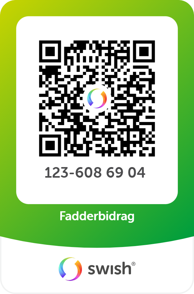 Bli fadder genom att betala in till vårt bankgiro 5589 – 7565 eller Swisha till 123 608 69 04. Skriv namn, adress och e-postadress på talongen samt märk med ”Fadder”.
